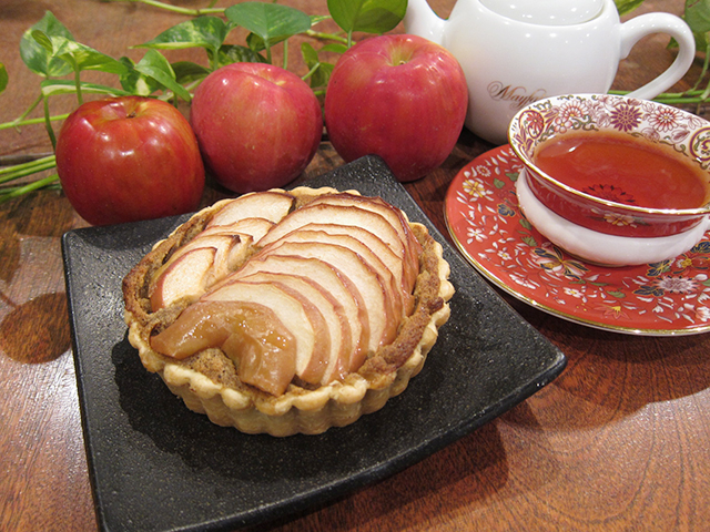 コクのあるケニア紅茶を混ぜ込んだタルトに、甘酸っぱい紅玉りんごとをのせて焼きました。