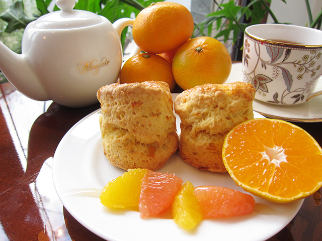 ヘタ以外、みかんのすべてを使ったスコーンです。みかんのやさしい爽やかな香りをお楽しみいただけますよ。
