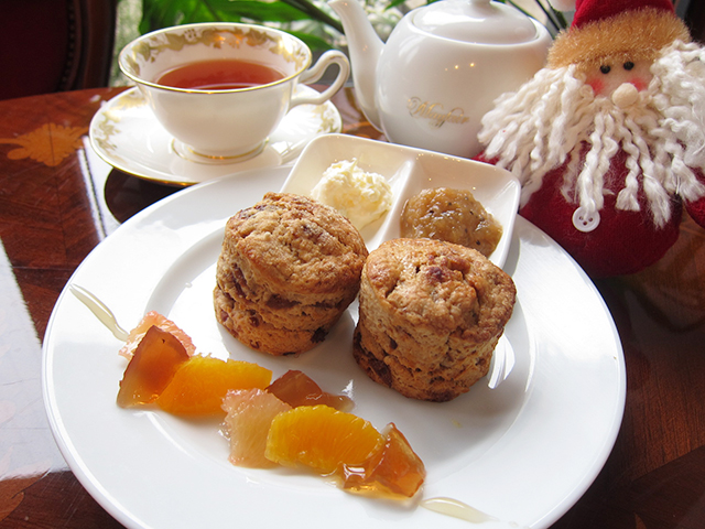 今日はクリスマスなので、ドライフルーツやスパイスが入ったクリスマスらしいスコーンをご用意しました。