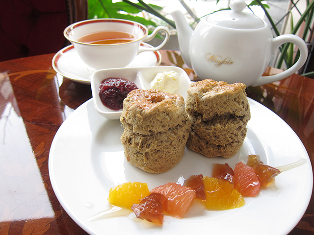 メイフェア近くの山吹園さんの煎りたてほうじ茶を粉末にして、スコーンに混ぜ込みました。